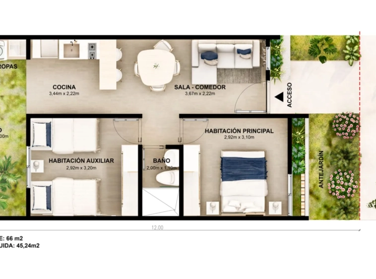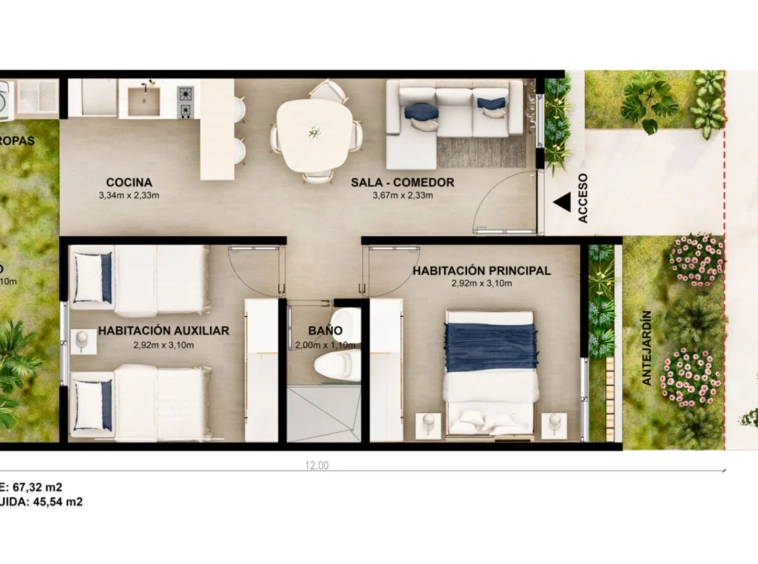Disfruta de espacios funcionales: 2 habitaciones, sala-comedor, baño y patio, además de zonas verdes, parqueaderos y vías pavimentadas que facilitan tu día a día. Si sueñas con tu propio hogar, aquí lo haces realidad gracias a la posibilidad de aplicar a subsidios de vivienda.